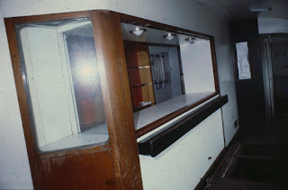 In the late 1950's E9128E was rebuilt by BR to internally match the more modern Mk1 stock, with Formica walls, blanked off windows, lowered ceilings and enclosed bar counters, it would have also been repainted into maroon at this point. Why BR selected 20 year old wooden stock when more